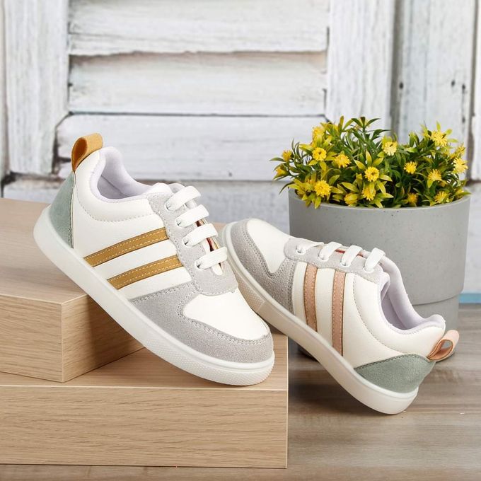 Flat Sneaker Shoes Casual For Kids - White & Yellow