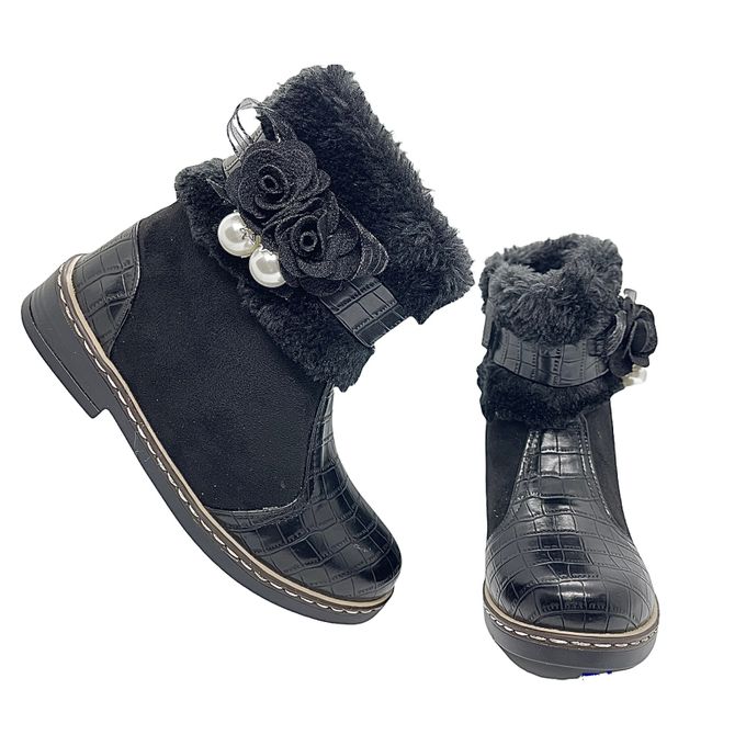 Ghils Winter Tights Legging For Girls - Lycra Padded Fur - Black