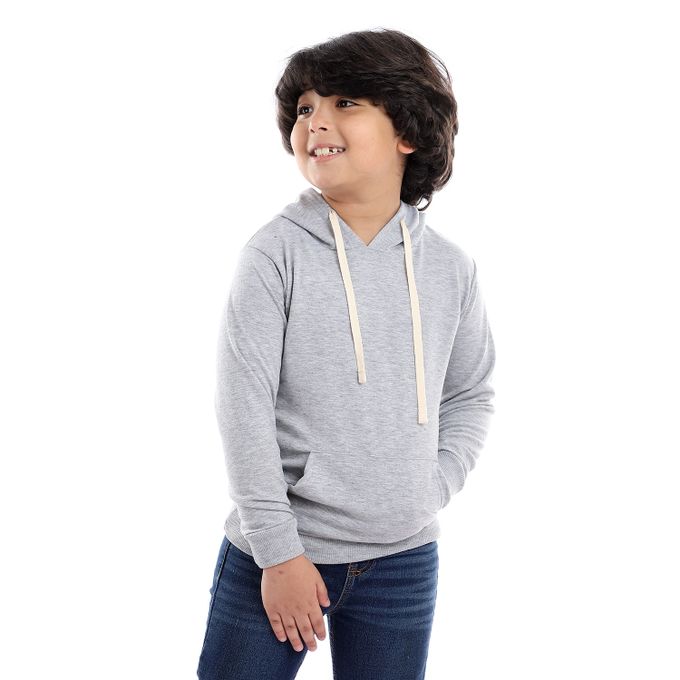 Kady Boys Cotton Hoodie With Kangroo Pocket - Light Grey