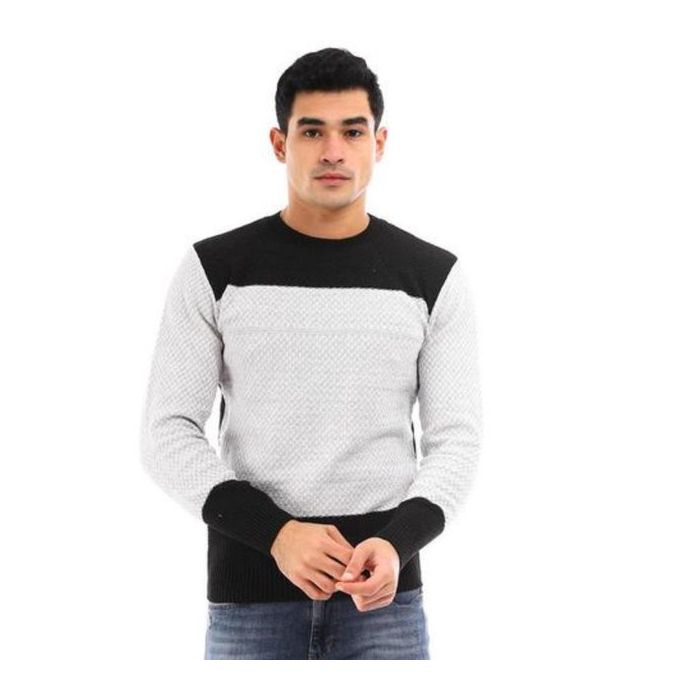 Andora Slip On Bi- Tone Pullover - Grey & Black