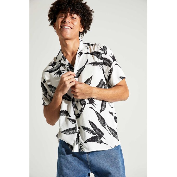Defacto Man Ecru Woven Top Short Sleeve Shirt